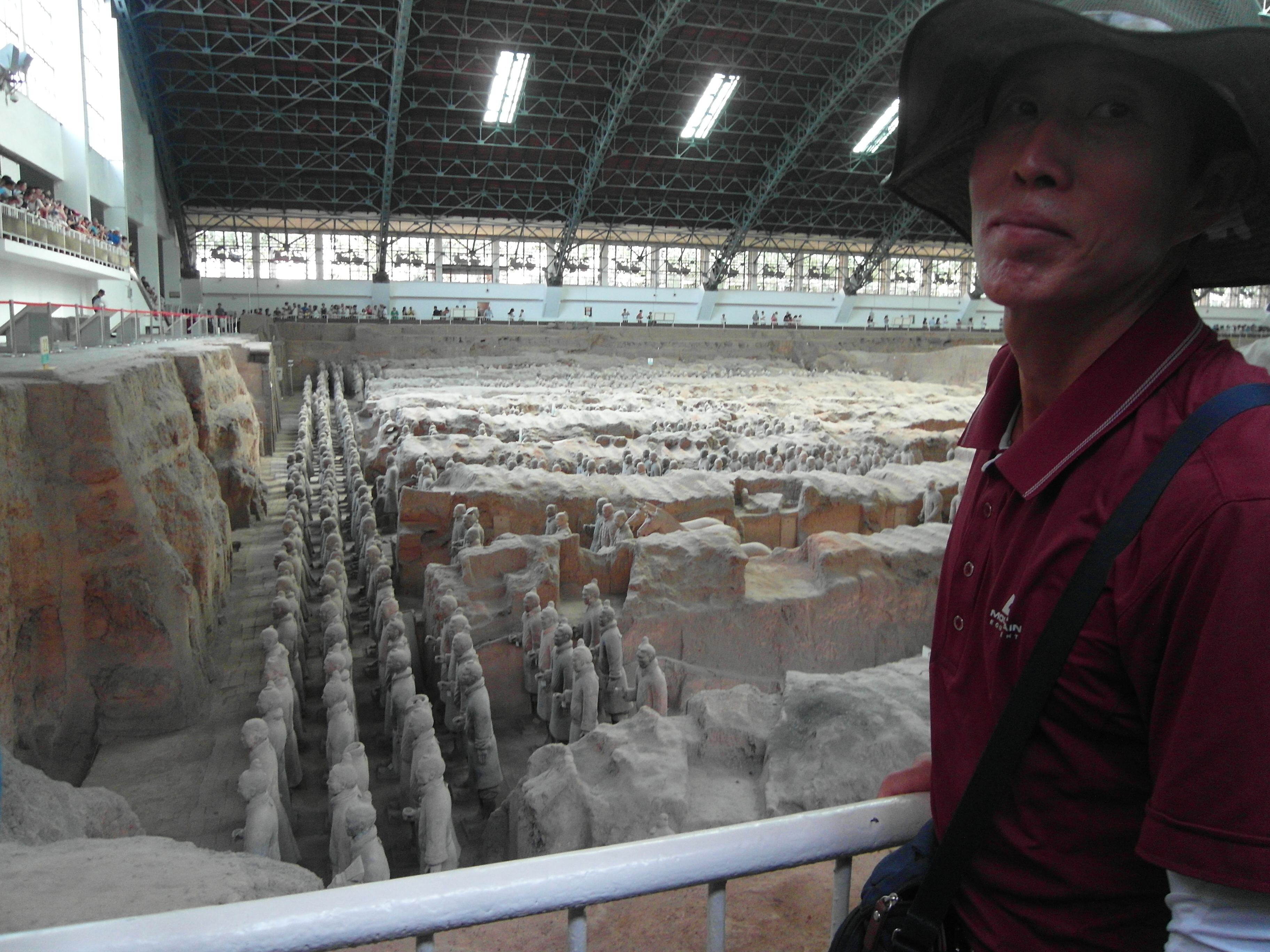 엄청 덥다. 진시황의 사후세계를 지키기 위해 묻었다는 병마용. 발굴된 곳과 발굴하고 있는 모습을 같이 볼 수 있다. 대강당같은 지붕아래 놓인, 흙으로 만든 군인들 규모가 대단하다. 많은 것이 목이 없거나 손 발이 없다. 중국 관광은 이제 어디가든 중국인이 제일 많아 시끄럽고 복잡하다.