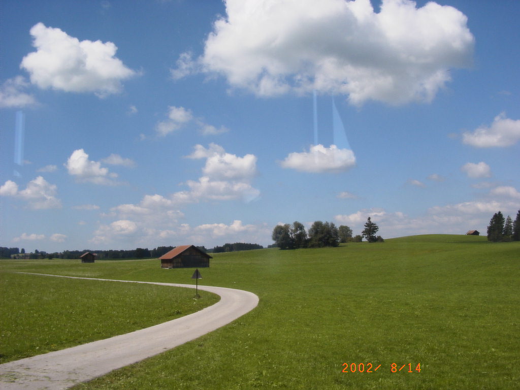 짐만 맡기고 다시 역으로 와, 디즈니랜드의 모델이 될 정도로 아름답다는 '노인슈반슈타인성'(일명 백조의 성)과 '호엔슈반가우성'에 가기 위해 푸센행을 탔다. 차창 밖의 경치가 정말 좋다. 특히 많은 사람들이 자전거를 타거나, 자동차에 싣고 간다. 아빠와 아이의 자전거를 연결한 특이한 것도 보였다. 자전거 도로는 안전하고 넓게 되어 있어 부럽다. 나도 자전거 타기를 좋아하지만 타다보면 도로와의 경계의 턱 때문에 엉덩방아를 찍거나 도로를 차지한 물건, 불법 주차된 차 때문에 내려야 하는 짜증나는 일이 많다. 많은 사람들이 자동차가 아닌 자전거를 이용하게 하려면 이런 문제를 먼저 잘 해놔야 한다.