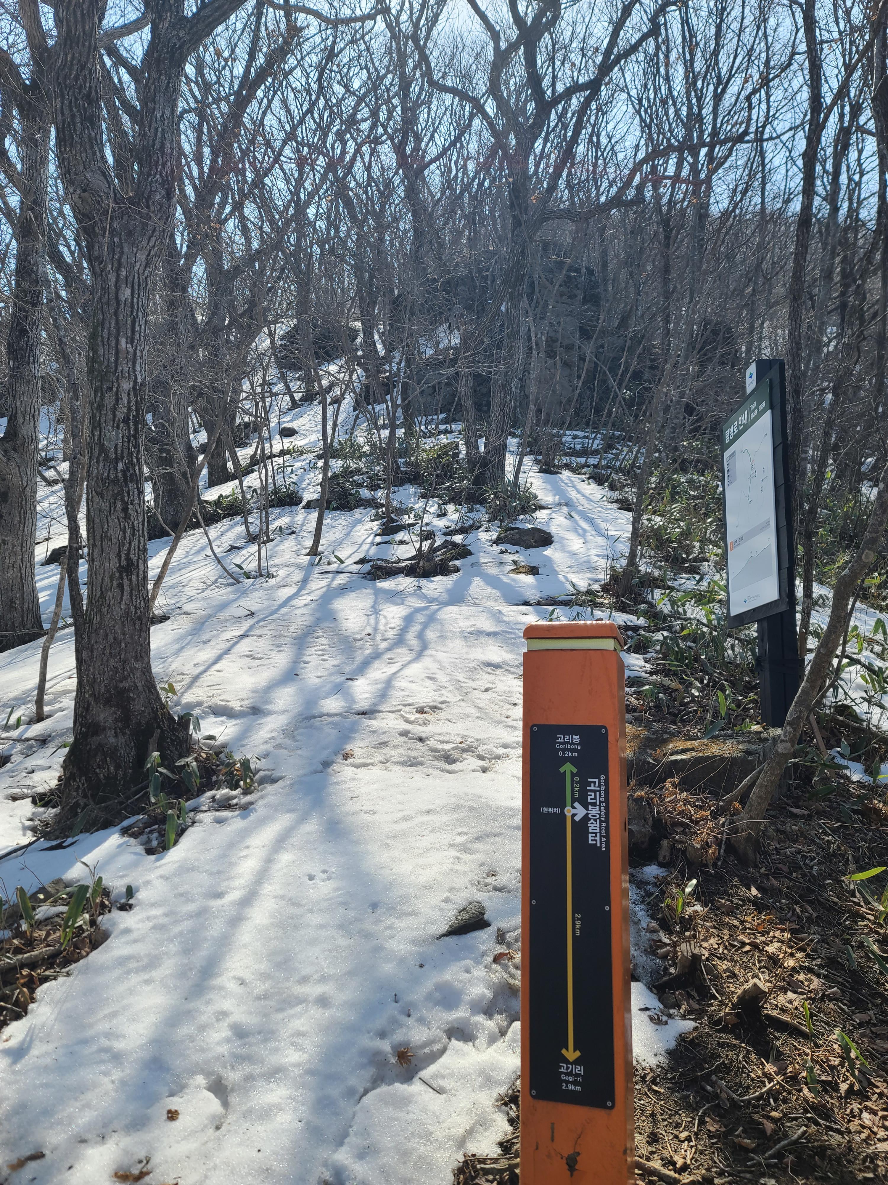 눈이 쌓인 곳도 있고 녹은 곳도 있는데