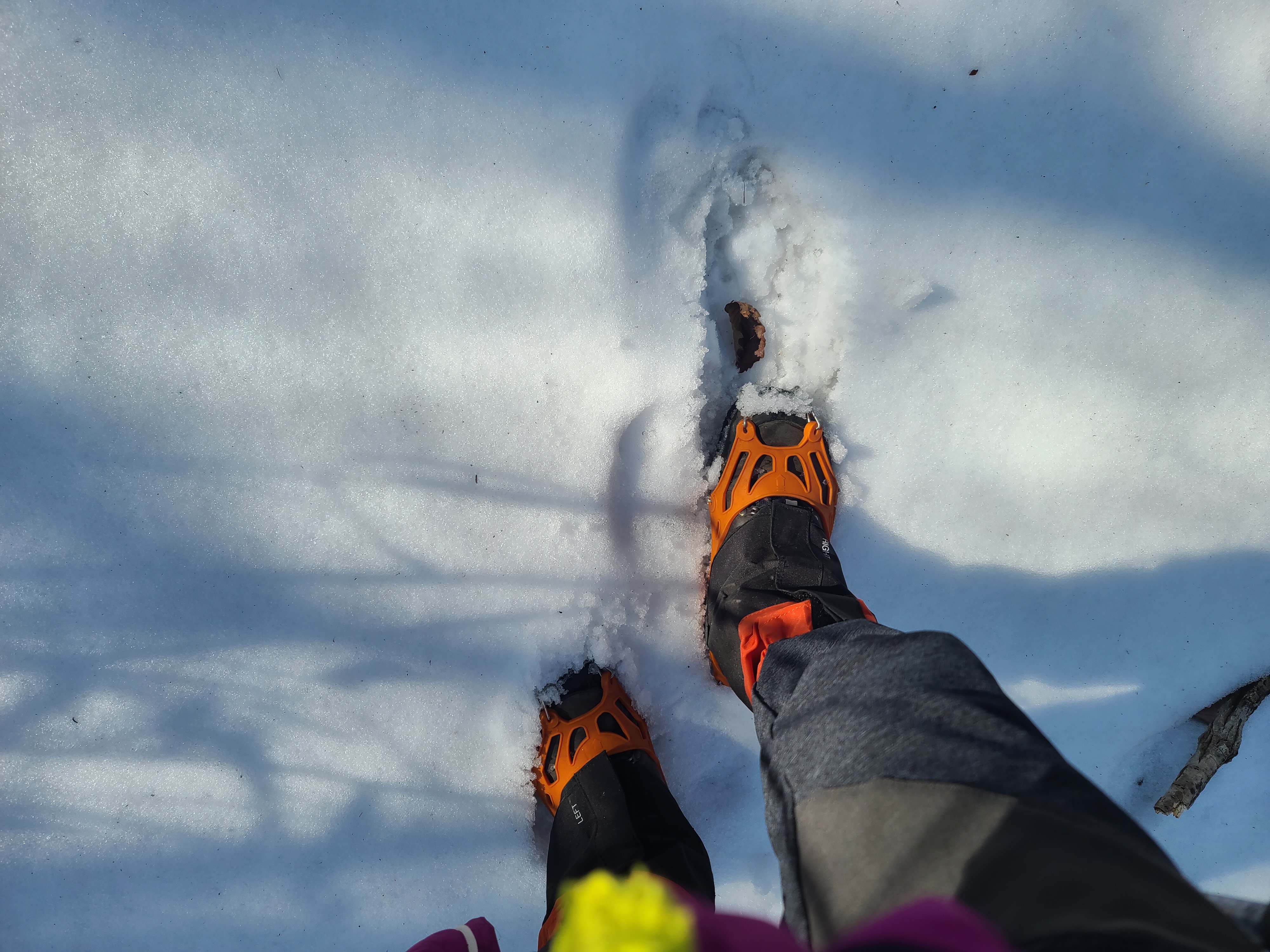 조심조심, 엉금엉금. 엄청 긴장하고 마음 졸이며 하산, 눈이 끝난 곳에서 체인젠을 벗고 나니