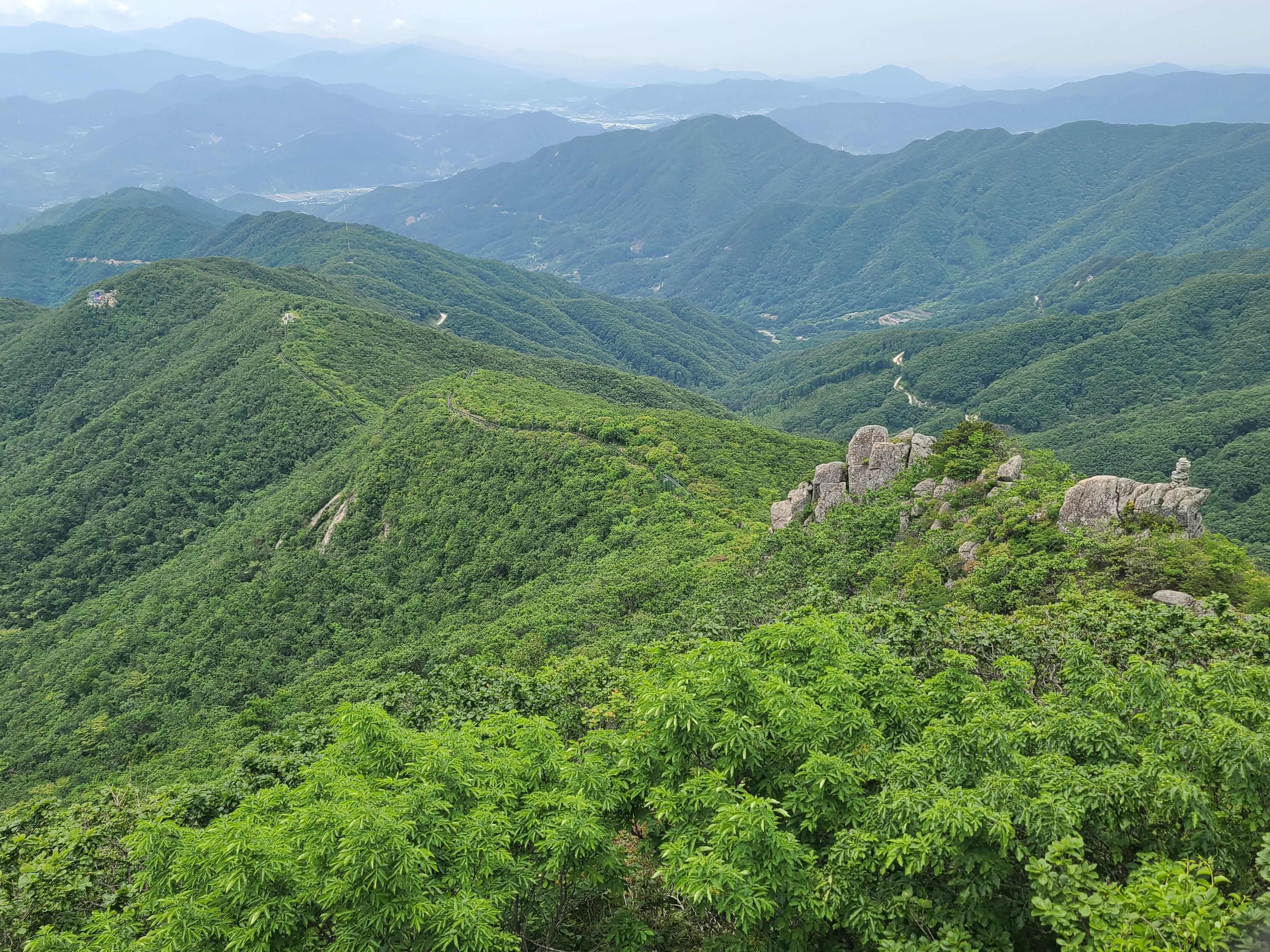후기] 더위에 약해서 이제 산행하기가 겁나지만 햇살은 뜨거우나 바람이 아직은 시원해서 다행이다. '오르고 함양' 인증지가 두 곳에 블랙야크 명산 100+가 하나. 초반 오르막이 좀 있지만 험한 코스는 아니다. 실제 계관봉을 못가서 아쉽지만 천왕봉에서의 풍경은 아주 멋지다. 하산길의 계곡도 좋았다. 철쭉나무가 많아 봄에 가면 더 좋을 듯하다.