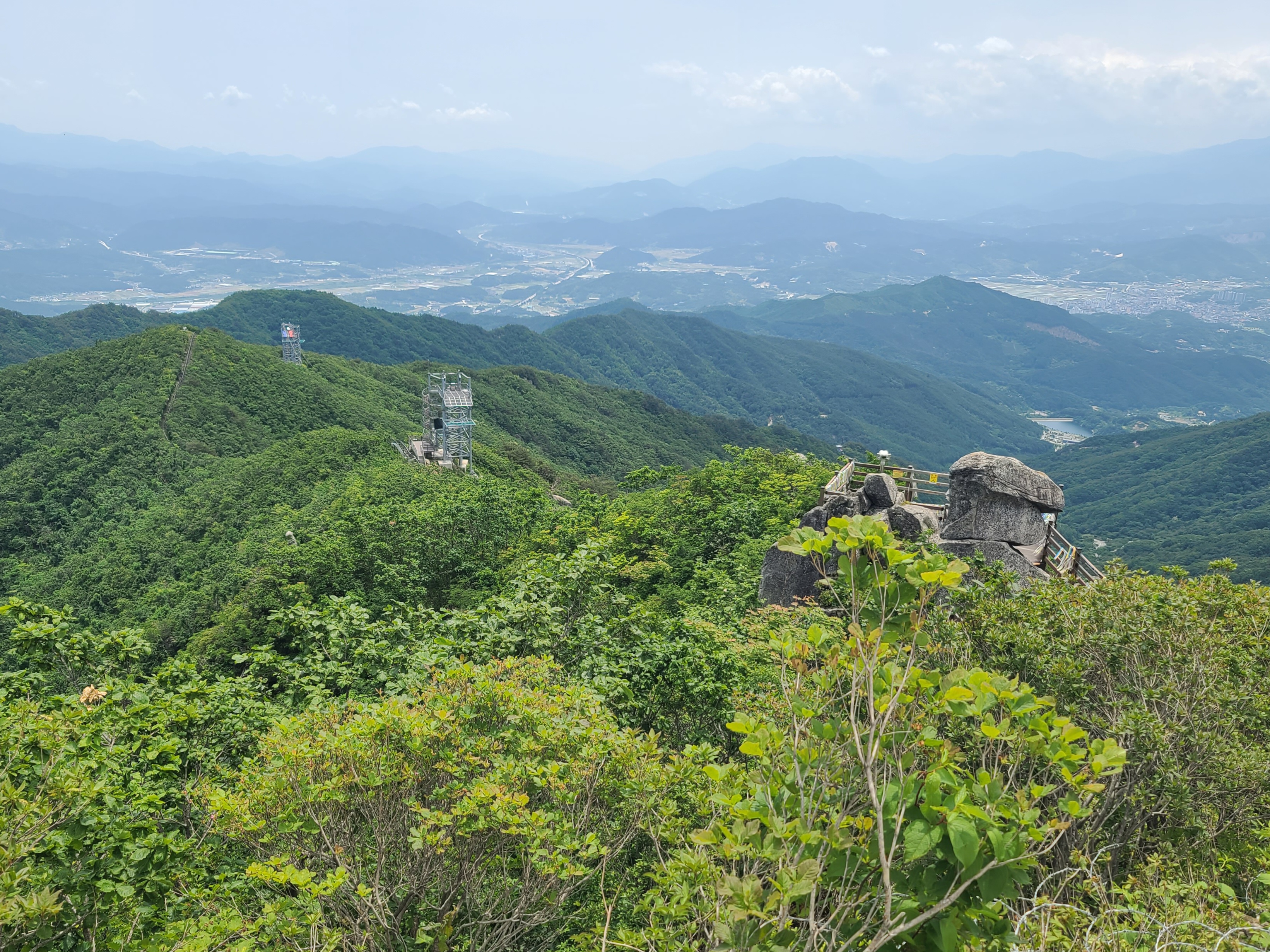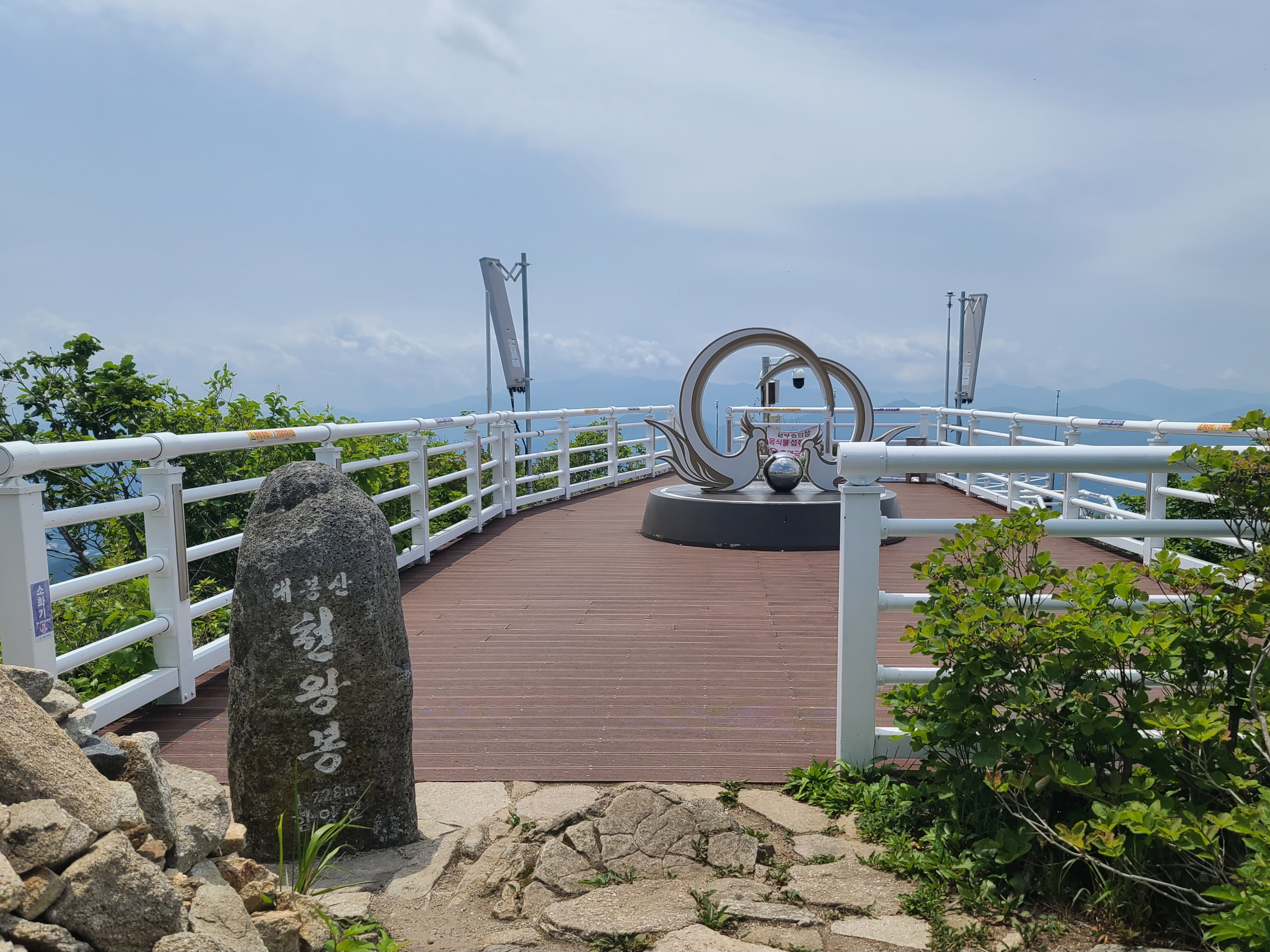 정상엔 모노레일 상부 데크가 크게 깔려있는데, 정상석은 셋방살이 하듯 귀퉁이에 서 있는 것이 좀 그렇다 ㅜㅜ